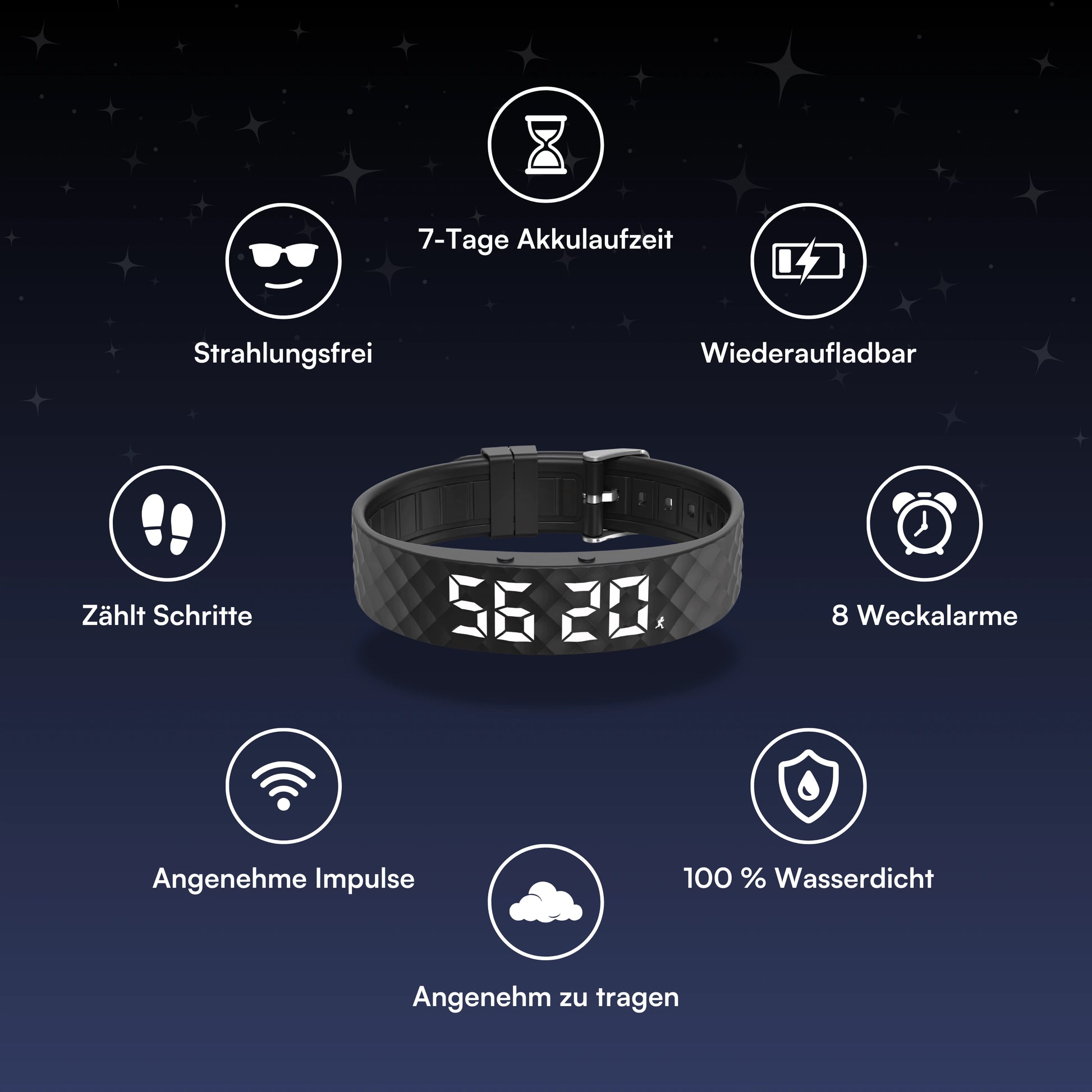 Mega Qualität die Bedingung ist auch schnell verstanden trage es jetzt schon ein paar nächte weckt oft etwas früher als die eingestellte zeit. bis jetzt bin ich noch nicht verklatscht aufgestanden auch wenn ich wenig schlaf hatte.