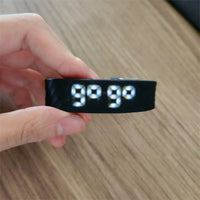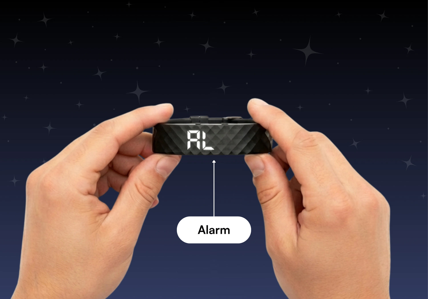 Drücke den rechten Button, bis AL (Alarm) auf dem Band angezeigt wird. Anschließend halte den rechten Button gedrückt, um den Wecker zu bearbeiten.